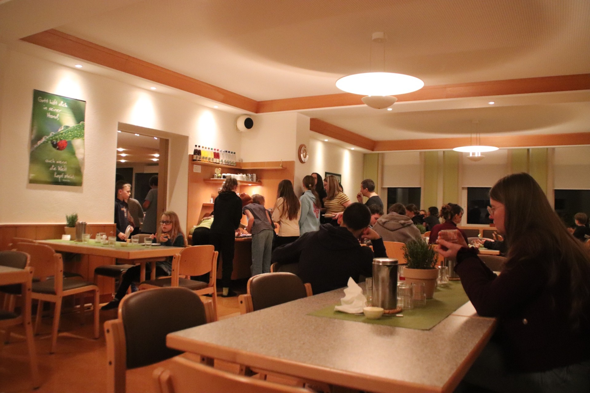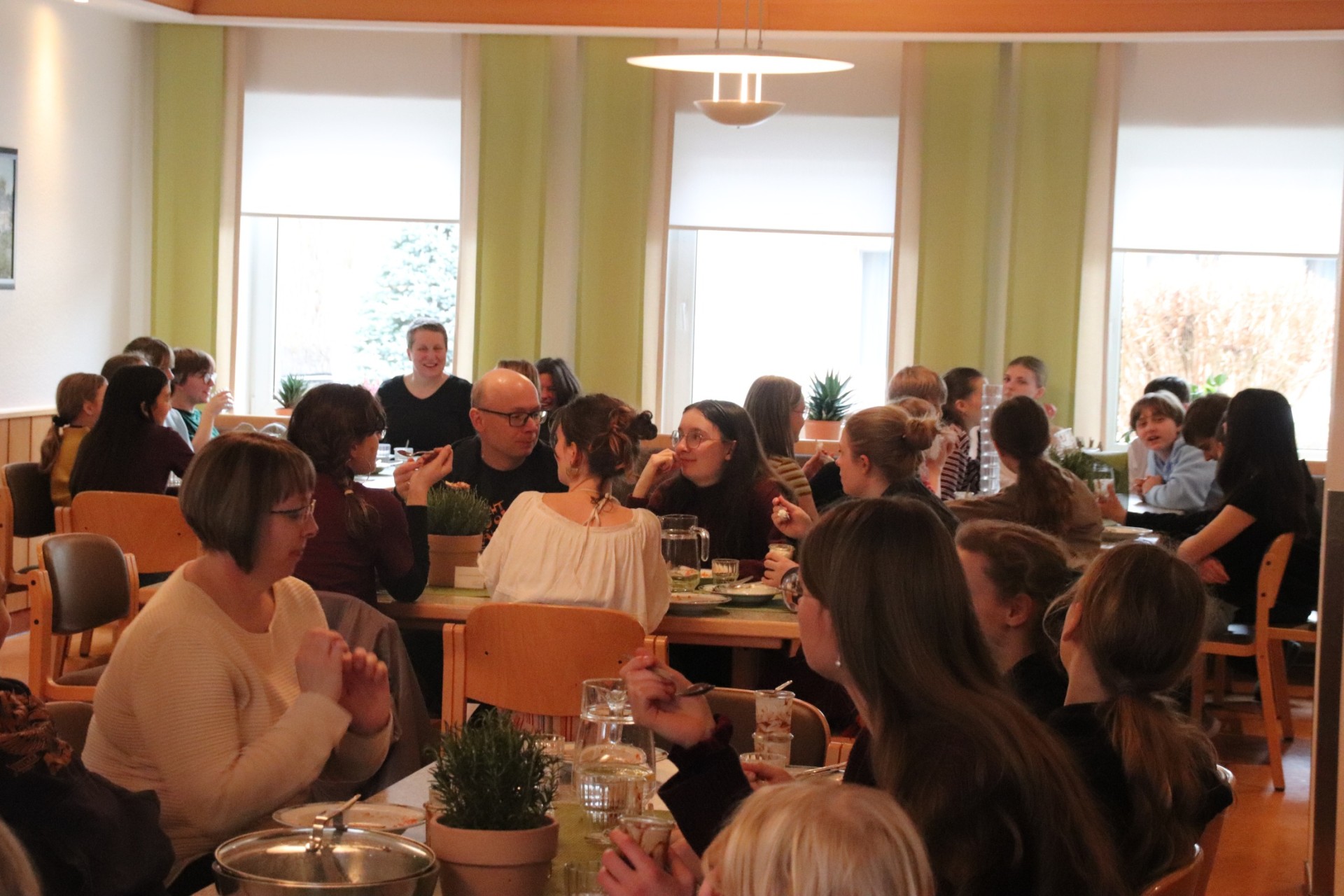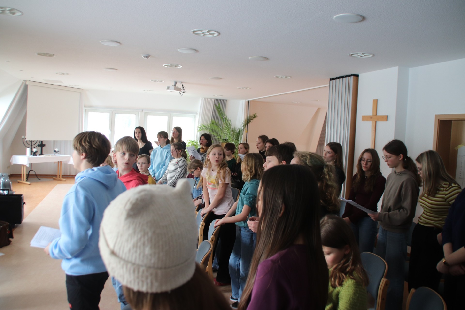 Der vorletzte Tag bricht an. Dieser startete wie jeder Tag mit Wecken, Frühstück und auch wieder Proben. Die Proben liefen hervorragend weshalb es auch schnell zum Mittagessen kam. Nach jenem war wieder eine "kleine" Frischluftrunde angesagt. Danach gab es noch eine kurze Probe bevor es Abendbrot gab. Anschließend feierten wir Agapemahl. Danach konnte man sich schon langsam Bett fertig machen und seine Koffer packen, denn am Freitag ist Abreise...