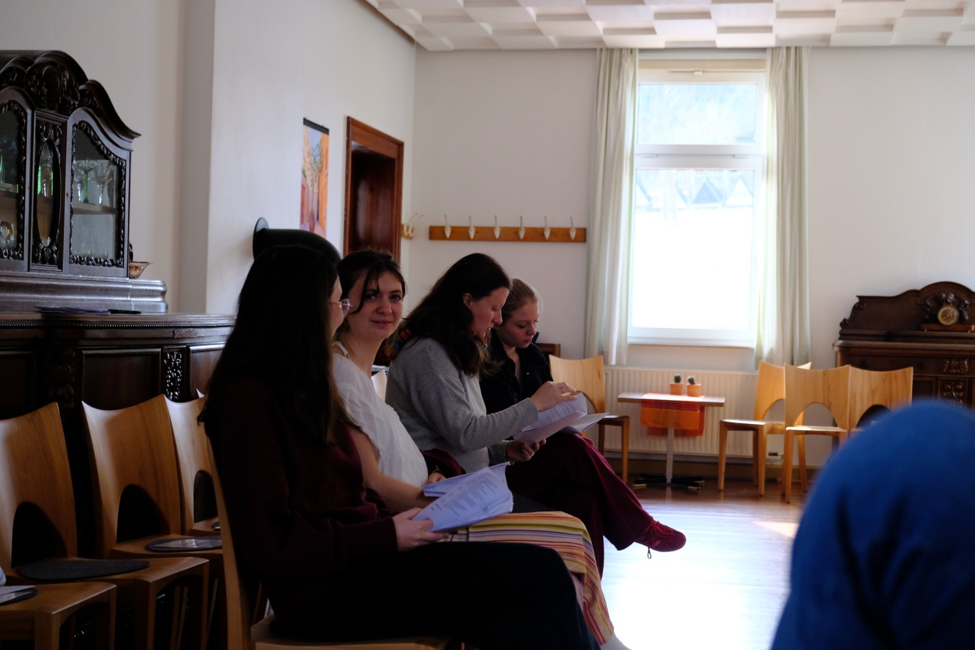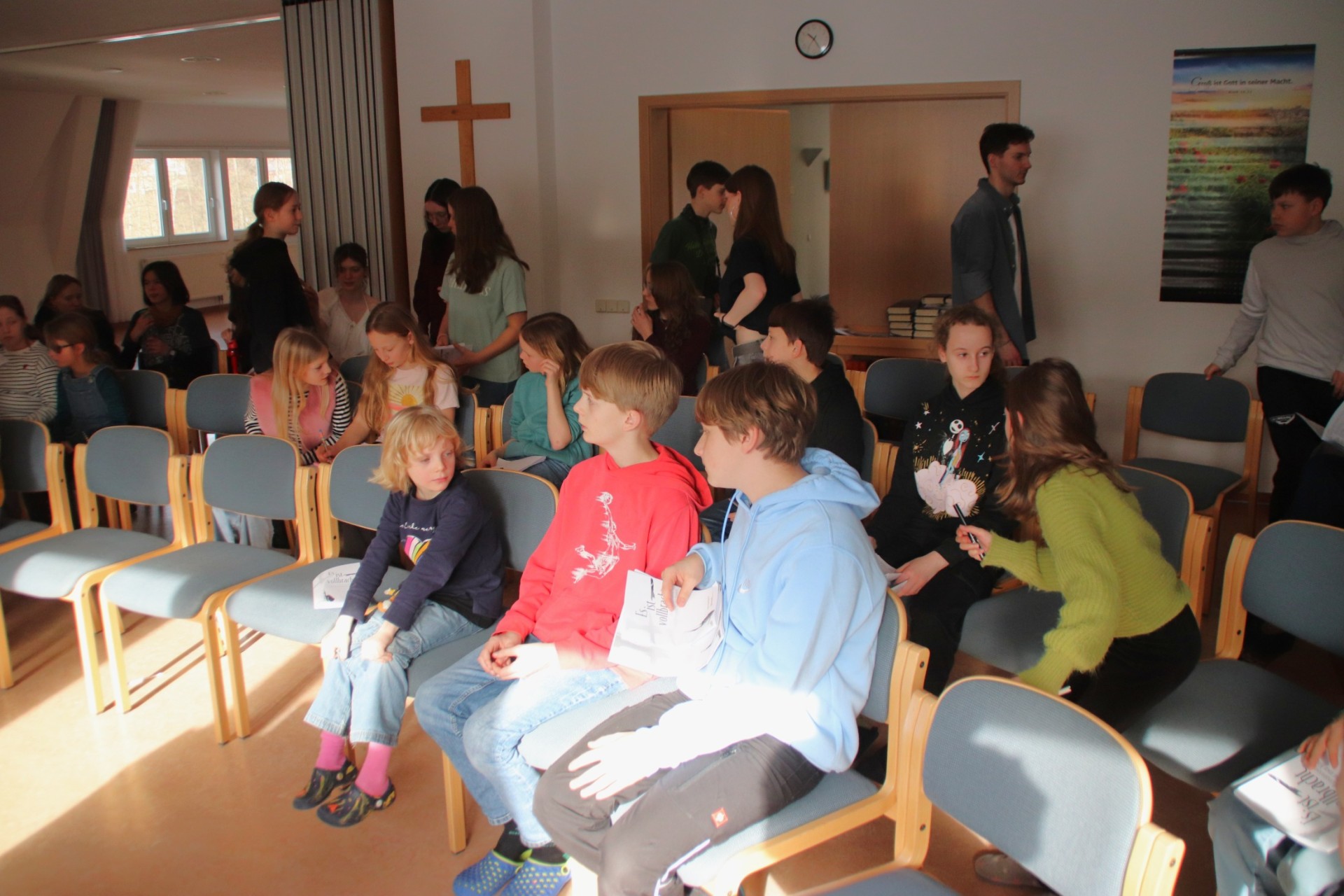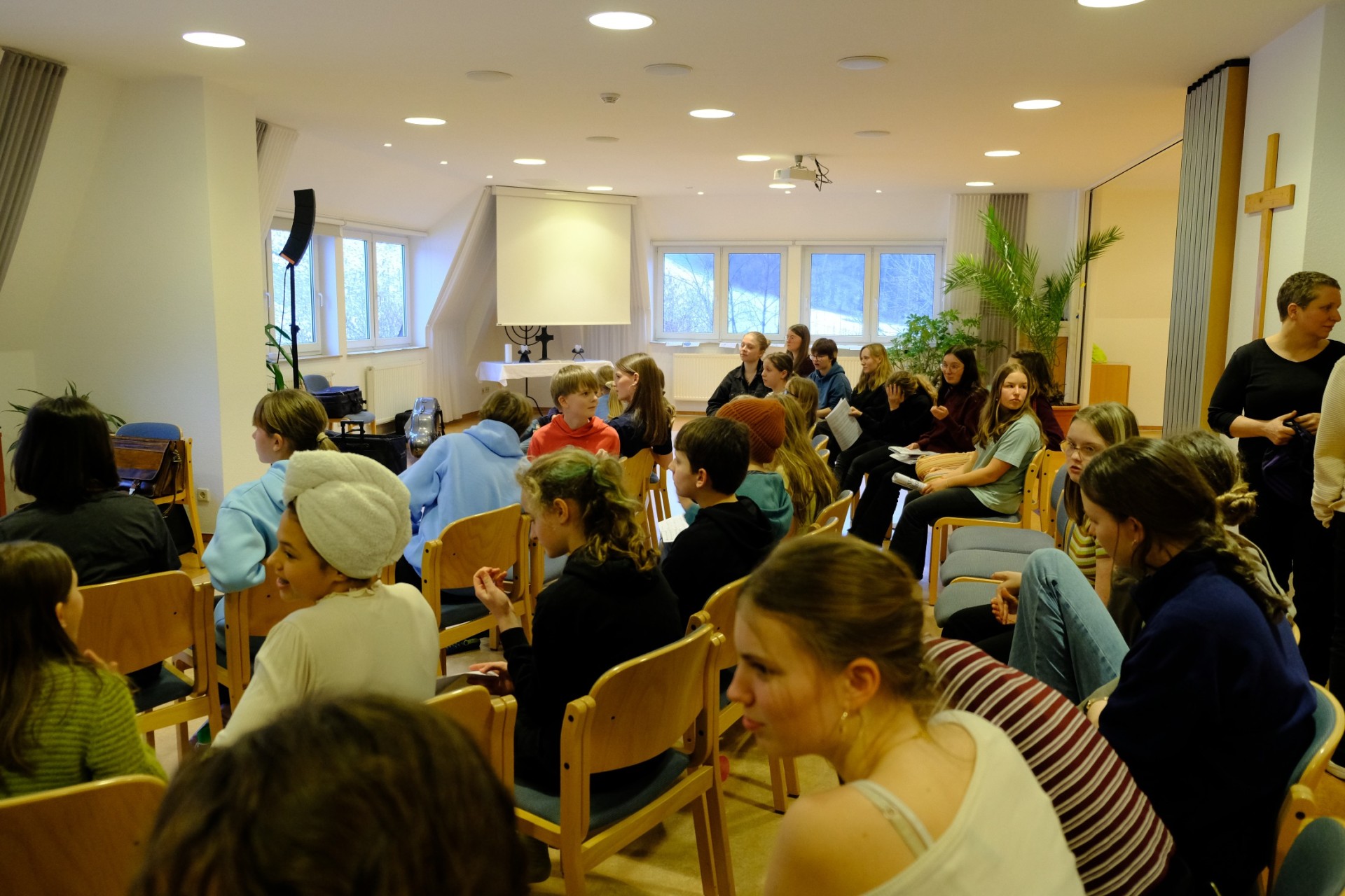 Der vorletzte Tag bricht an. Dieser startete wie jeder Tag mit Wecken, Frühstück und auch wieder Proben. Die Proben liefen hervorragend weshalb es auch schnell zum Mittagessen kam. Nach jenem war wieder eine "kleine" Frischluftrunde angesagt. Danach gab es noch eine kurze Probe bevor es Abendbrot gab. Anschließend feierten wir Agapemahl. Danach konnte man sich schon langsam Bett fertig machen und seine Koffer packen, denn am Freitag ist Abreise...